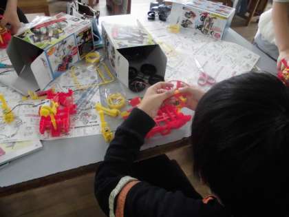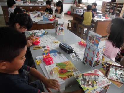 理科では『電池のはたらき』の単元に入りました。乾電池にモーターをつないで回路を作り,モーターの回る向きを調べました。