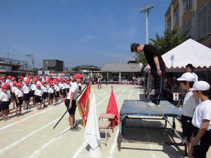 昨年度優勝の赤組から優勝旗返還が行われました。