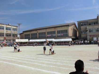 最後の運動会。そして,最後の演技になりました。ひとり技から多人数技まで,自分を信じ,仲間を信じ取り組みます。練習のときは,何度も苦しいおもいもしました。けれども今日は違います。いいところを見せます。