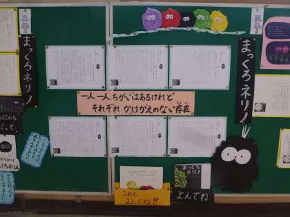 5月に校長先生の読み聞かせ「まっくろネリノ」を聞いて,人権について考えました。