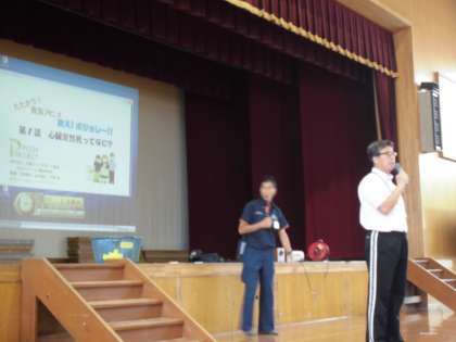 本日の放課後,救命救急の研修がありました。大切な命を救うために,万が一事故が起きた場合に備えての研修を実施しました。伏見消防署の方3名が来校くださいました。