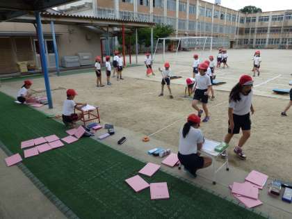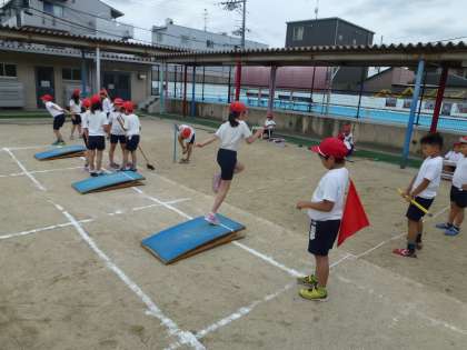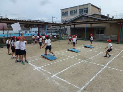 運動会が終わり,プール学習までの間,3年生は「はばとび」に取り組みます。