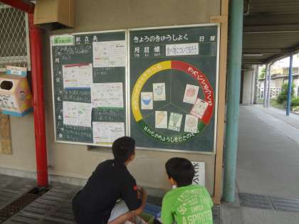 委員会の子どもたちが声をかけ合いながら,作業をしていました。