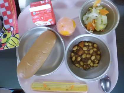 今日は,カレー味のきいたチリコンカーンでした。