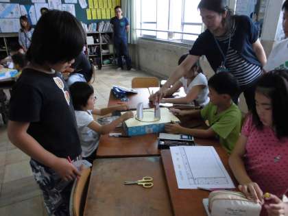 2校時,なかよし工作では,グループで『とんとん相撲』を作って,ゲームを楽しみました。