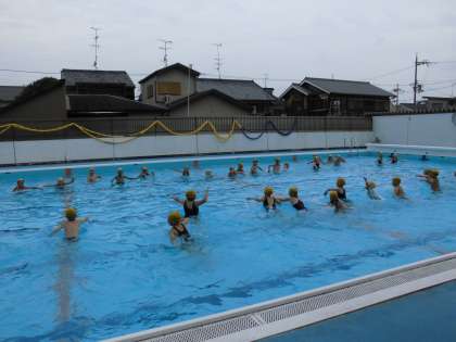 3年生は,3校時,「水泳」です。水の中での動きを楽しみ,その後,クロールの練習をします。