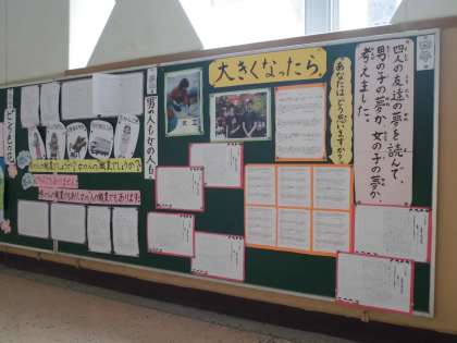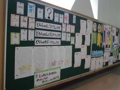 7月は,男女の人権の尊重について,各学年,発達段階に応じて学習したことを掲示しています。