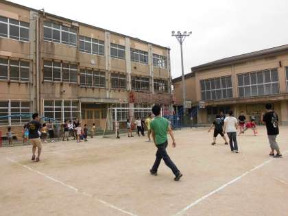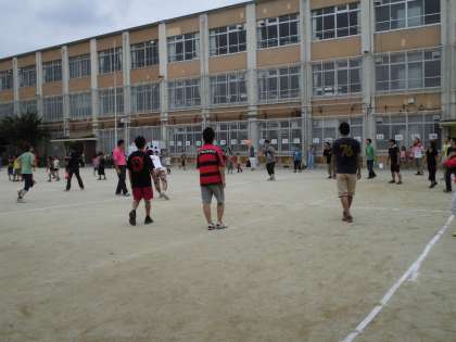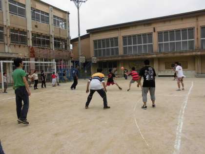 女性も男性も入り交じっての試合でしたが,かけ声もボールの勢いも迫力満点です。