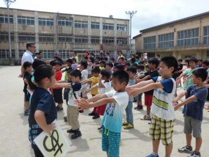 ドッジボールで,たくさん汗をかきました。みんな,よくがんばりました。さぁ整列ですよ。