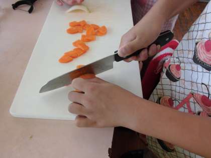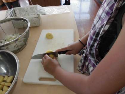 家庭科室では,カレー作りも行っていました。きれいに皮を剥いた野菜を,均等の厚さになるように,慣れない手つきではありますが,包丁をつかってがんばっていました。