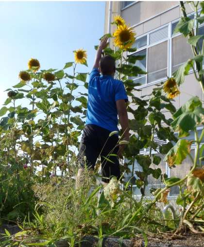 ヒマワリも,この学習会期間中にたくさんの子どもたちに見守られ,本当に大きく成長しました。