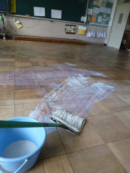 今日は3年生の両教室をワックスがけしました。
