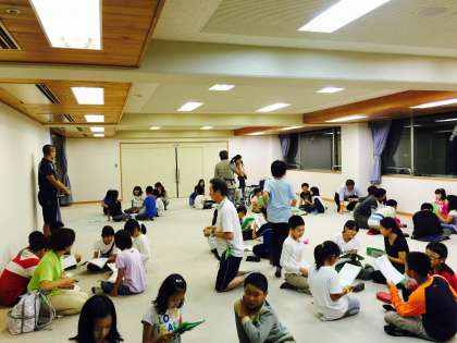 奥越は大変な雨と風のようです。そのため,ナイトハイクは中止となりました。入浴後は,各係の反省会や生活班の反省会をしています。