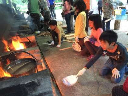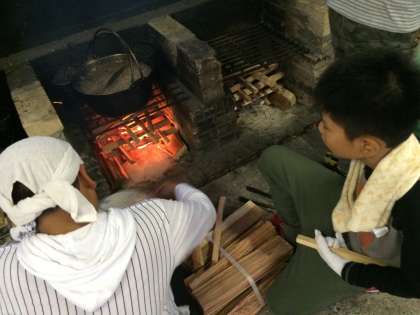 まき係は,熱い火の前で,上手に火の調節をしています。どんなカレーが出来上がるのでしょう。