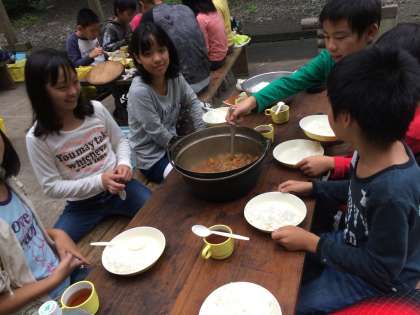 カレーが出来上がりました。ご飯もルーもばっちりです。さすが5年生。さぞかしおいしいことでしょう。