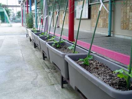 緑のカーテン 公開日 2010/05/26 更新日 2010/05/26 学校の様子 児童会環境委員の子どもたちが,緑のカーテンになるゴーヤを育て始めました。また,地域の方からいただいたベゴニアもプランターに植え,学校内の環境を整えてくれています。