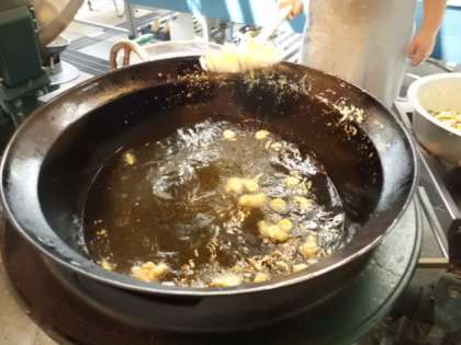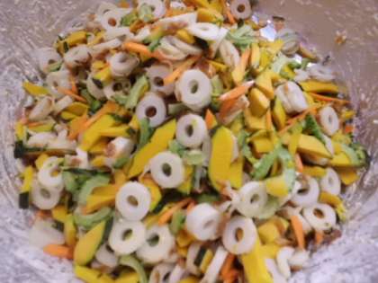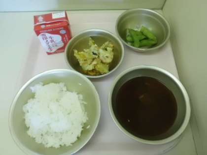 今日は,ゴーヤ・かぼちゃ・人参・ちくわを使ったかきあげが登場しました。