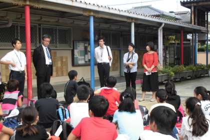 0910修学旅行その2 公開日 2015/09/10 更新日 2015/09/10 学校の様子 8時20分に出発式が行われました。 引率は,校長先生・前田先生・若本先生・森川先生・添乗員さんとカメラマンさんです。
