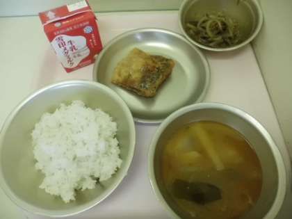 今日は,カリッと揚がった鯖のたつたあげが登場しました。さばをしょうが・料理酒・しょうゆで下味をつけておくので,カリッとさの中には,魚の臭みもなくジューシーな味わいがありました。子ども達にも大人気の一品です。
