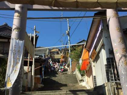 うどん打ち体験の後は,こんぴらさん参拝です。