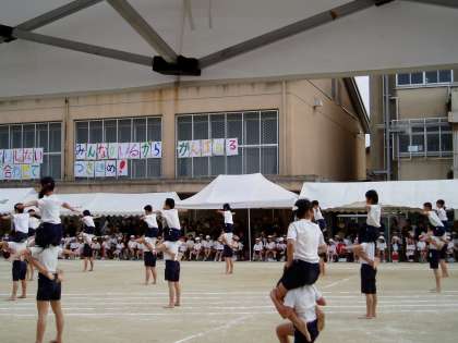 プログラムの最後は6年生の組体操です。最後の運動会は,思い出に残る素敵な行事になりました。