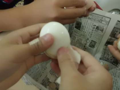 茹で卵の皮をむいたことがない!という児童も中にはいました。ツルンとむけると気持ちがいいので,楽しんで取り組めていました。
