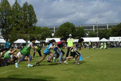 0923淀体育カーニバルその2 公開日 2015/09/23 更新日 2015/09/23 学校の様子 開会式が終わり,160歳リレー(予選)のあと,いよいよ小学生競争が行われました。 たくさんの児童が参加しました。きれいな芝生の上を,思いっきり走っていました。 かわいらしい参加賞ももらっていました。