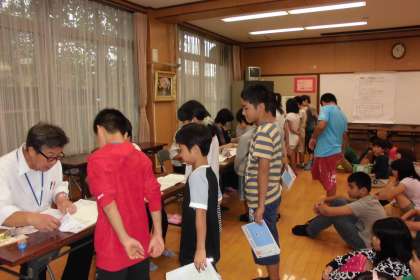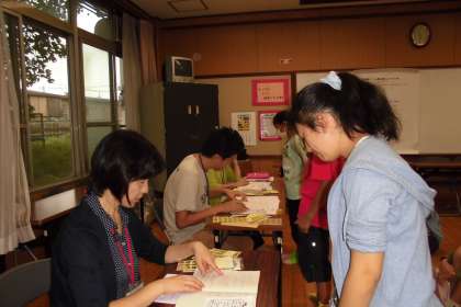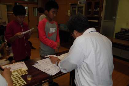 0924ノート検定高学年 公開日 2015/09/24 更新日 2015/09/24 学校の様子 本日から,前期ノート検定が始まりました。 まずは,高学年です。 昨年度より,本校は,実施しておりますので,ノート検定は,どんなものなのかよくわかっていて子どもたちは落ち着いていました。 算数ノートの見てもらいたい頁を開き,検定を受けていました。合格シールやスタンプをもらってうれしそうでした。 「学習のあしあと」として,ノート作りを今後もがんばっていってほしいです。