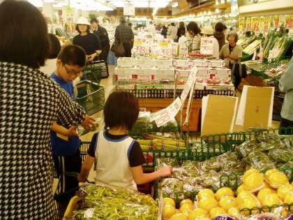 わかくさクッキングでは、まず材料をお店に買いに行きます。