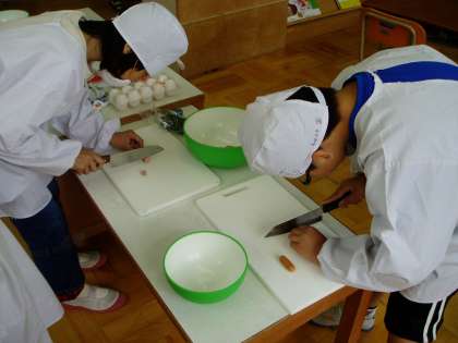 みんなで作った「スペイン風オムレツ」は、彩りもきれいにできあがりました。