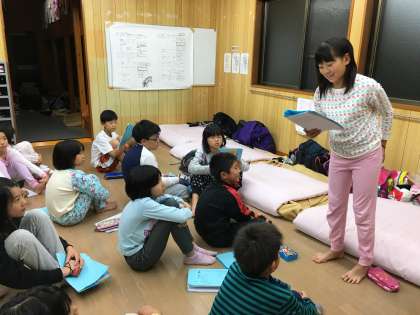 昨日のナイトウォークでは,歌を歌ったり,全員で手をつないだり各班で工夫をし,すべての班が無事ゴールすることができました。反省会はクラス別で行いました。活動を通して「班で協力し合い,美味しいすき焼き風煮ができた。」「ナイトウォークは怖かったけど,友達が隣で励ましてくれた!」など,友達と共に頑張ったこと,協力し合ったことを,たくさん書いていました。