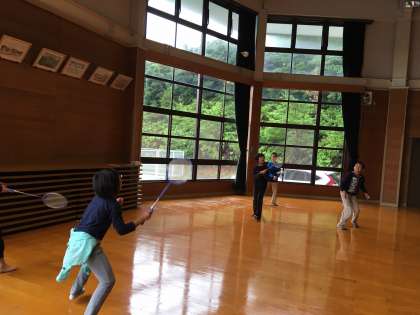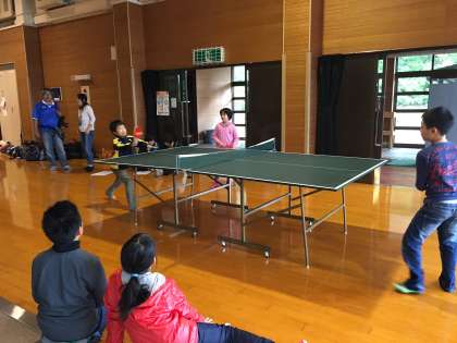 室内遊びをしました。バドミントンや卓球,輪投げ,フリスビーなどを楽しみました。