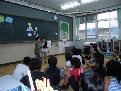 4月から頑張ってきた音読の力を活かして,お話の音読をしました。あまんきみこさん作の「ぽんぽん山の月」というお話を読みました。ぽんぽん山という,誰かが困っていたり悲しかったり,自分は我慢して人を思いやったりすると,誰かがそっと見守ってくれている心温かな山が舞台のお話です。