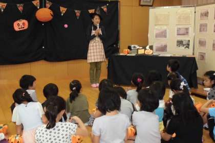 作ったカボチャの鉛筆立てをうれしそうに持ちながら,帰っていく子どもたち。子どもたちも教員もたのしい時間を過ごすことが出来ました。