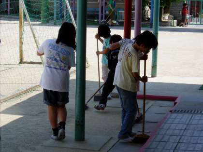 1年生をはじめ,みんなで協力して,自分たちの学校をきれいにしています。