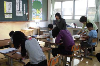 1022参観授業その4 公開日 2015/10/22 更新日 2015/10/22 学校の様子 若草学級は,道徳で「心と心の握手」の資料を使って,思いやりや親切について学んでいるところを参観していただきました。