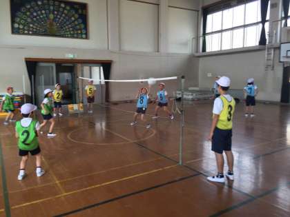 ソフトバレーボールの学習の様子です。 各チームで作戦を考えながら活動しています。