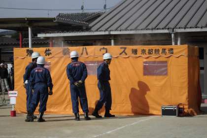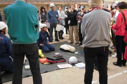 運動場には,たくさんの設備等がおかれていました。来られた方々は,防災体験をされていました。