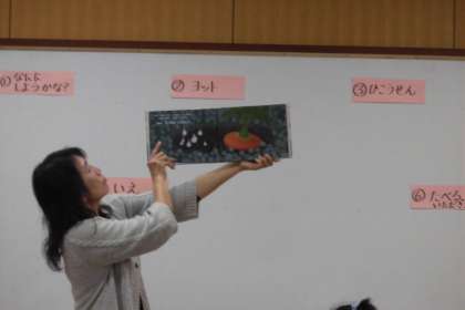 まずは,絵本の読み聞かせをしてもらい,その絵本の世界をそれぞれが表現していきます。