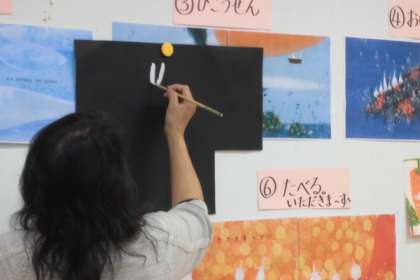 べた塗りではなく,とんとんとんと筆をおいていくようにと教えてもらいました。