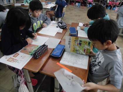 1109 4年生 面積 公開日 2015/11/09 更新日 2015/11/09 学校の様子 4年生は面積の学習をしています。班の中で自分の考えを友だちに伝えたり,全体でその考え方を共有したりと,自分の思いを上手く言葉で伝えられる様子が見られるようになってきました。どの教科においても大切なことですね。