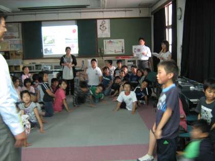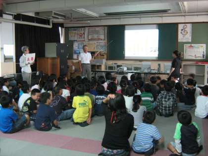 4年生は総合的な学習の時間を活用し,環境をテーマに学習を進めています。昨日は,京都市環境政策局地球温暖化対策室が企画する「子どもエコライフチャレンジ推進事業」の一環で,NPO法人「気候ネットワーク」の方々が来校され,地球温暖化等について教えてくださいました。