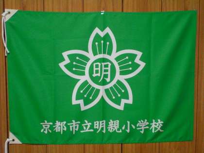 1118 新しい校旗 公開日 2015/11/17 更新日 2015/11/17 校長室から 新しい校旗が出来上がりました。今朝の児童集会の後,全校児童に紹介しました。校歌1番の歌詞を受けて,緑色にしました。4年生が「みさきの家」での宿泊活動に行ったときに掲げたり,校外に出て明親小学校を表す時に使いたいと思います。