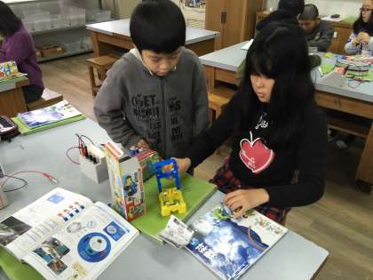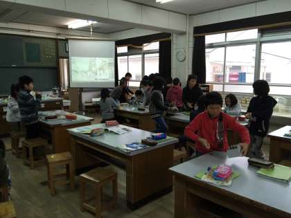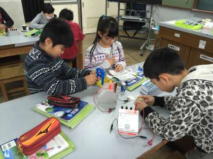 電磁石の性質の学習の様子です。 グループで協力して実験を進めています。