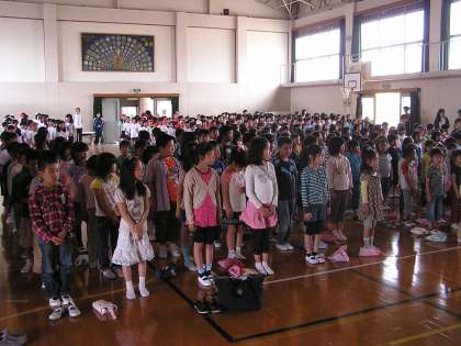 5月は憲法月間です。11日(月)の朝会では校長先生が『あしなが』という絵本の読み聞かせをしてくださいました。