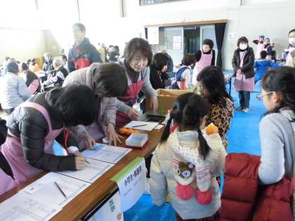 受付を済ませ,おもちをもらいます。