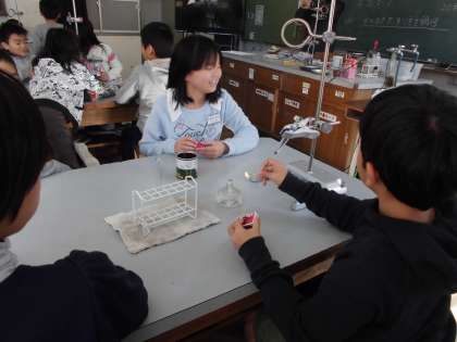 1207 4年生 ものの温まり方 公開日 2015/12/07 更新日 2015/12/07 学校の様子 今日は水の温まり方を学習しました。示温テープを活用して,どこから水は温まっていくのかを調べました。試験管に入れた示温テープの黄色が赤色に変化したときには「おー!!」と驚きの声を上げていました。