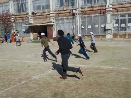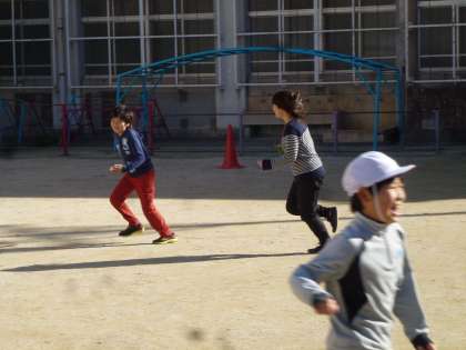 普段あまり見ることの無い全力で走る担任の先生から,子どもたちは楽しそうに逃げ回っていました。