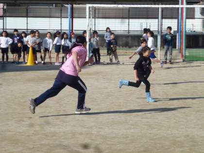 1216 学年別おにごっこ大会(2年) 公開日 2015/12/15 更新日 2015/12/15 学校の様子 2週間に渡ってやってきた鬼ごっこ大会も今日が最終日。 最後に登場するのは,2年生です。 最も人数が多い学年なので,捕まえても捕まえてもまだまだいます。 担任も運動委員も全力で立ち向かいましたが,2年生の方が一枚上手でした。