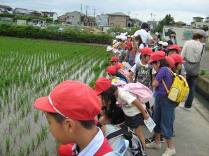 草花で遊んだり、田んぼや畑の近くで生き物を見つけました。